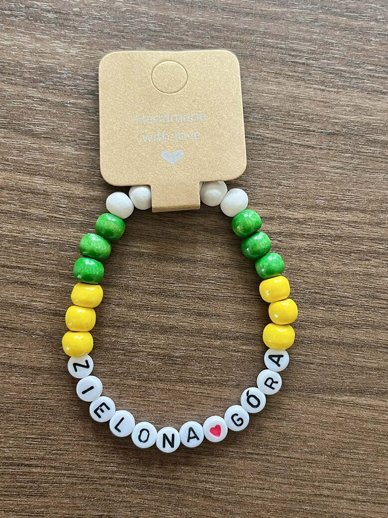 Ręcznie nawlekane drewniane bransoletki z własnym tekstem – proste, stylowe i idealne jako pamiątka, prezent lub gadżet reklamowy.